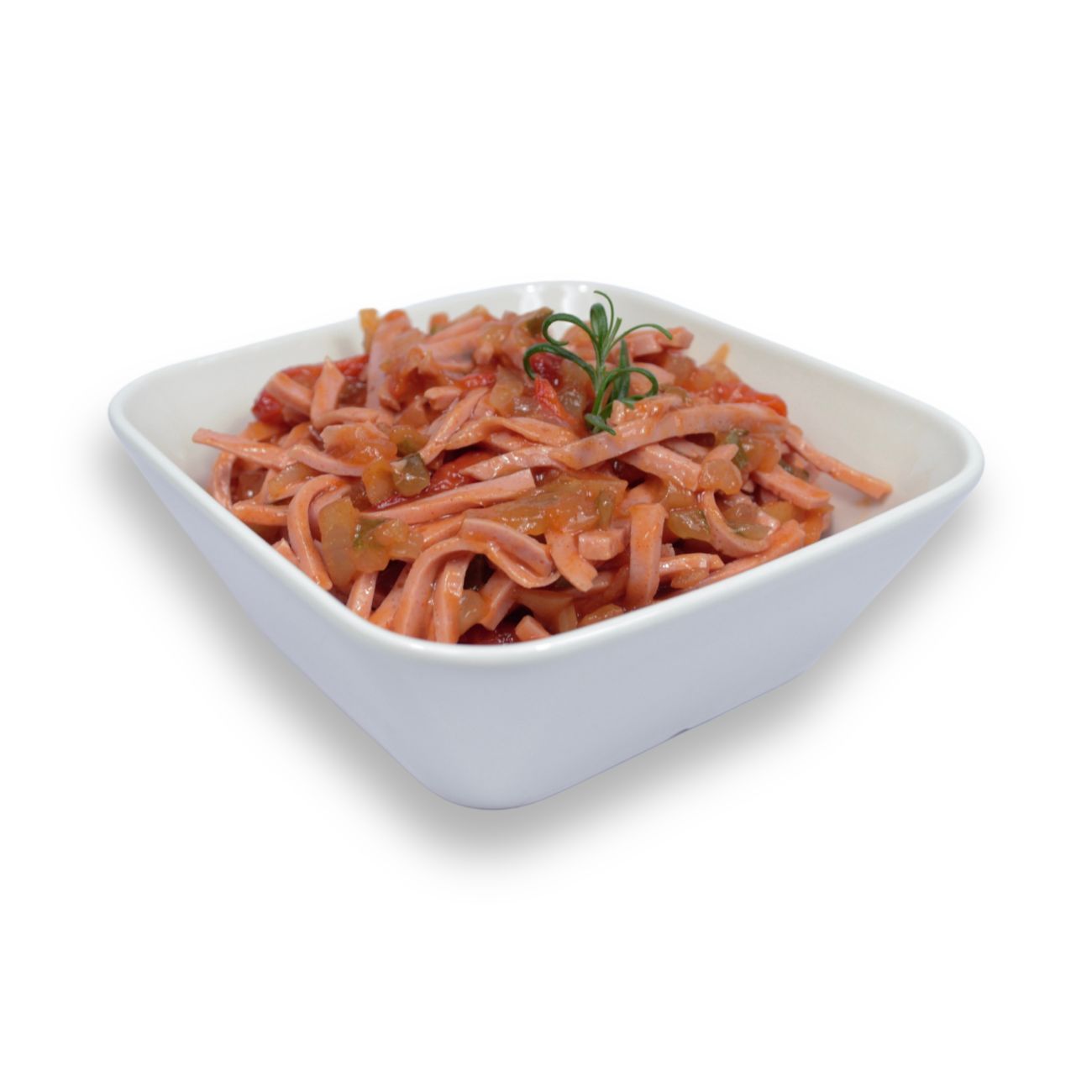 výrobní salám, paprika, cibule, okurky, kapie, hořčice, česneková pasta, feferony, cukr