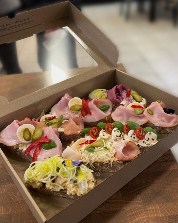Tatarka, šťavnatý roastbeef, červená cibule, pórek, paprika a okurka. Výrazná chuť pro milovníky masa.