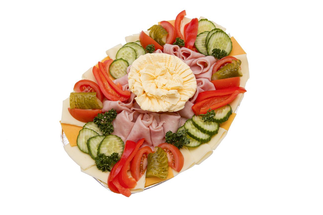 sýr Eidam, šunka, máslo, obloha z čerstvé zeleniny, petržel
