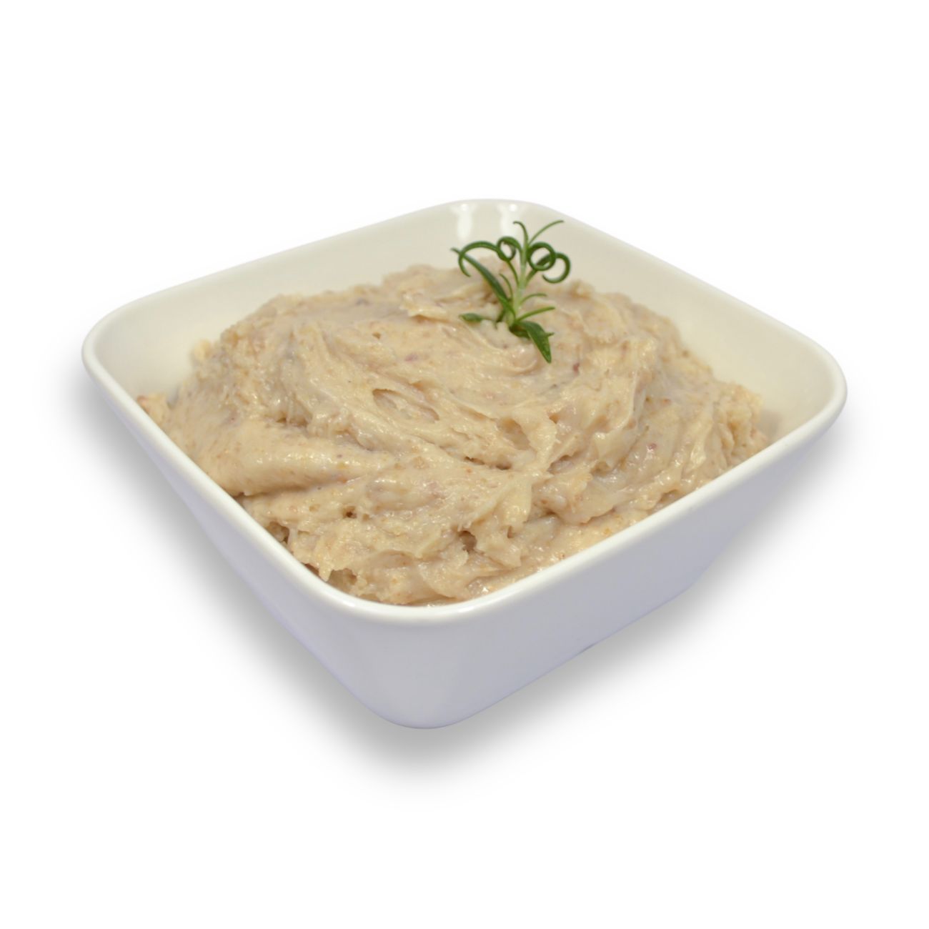 škvarky, vepřové sádlo, cibule, česnek, sůl, hořčice, směs koření