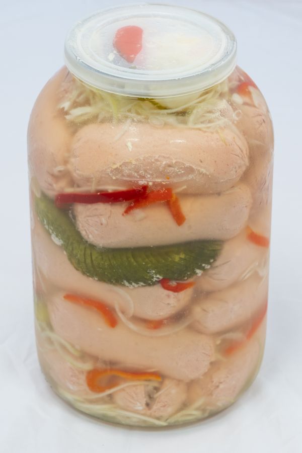 špekáčky, čerstvá cibule, kapie, okurka, feferony sterilované
